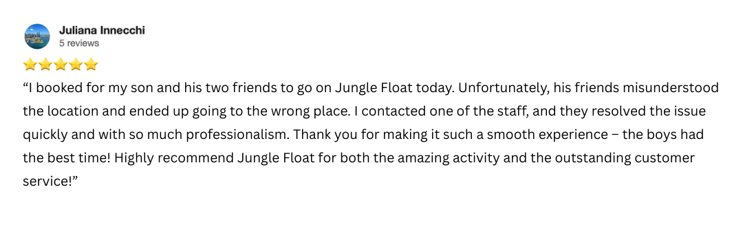 Jungle Float operates in 3m deep water and approximately 25m from shore.